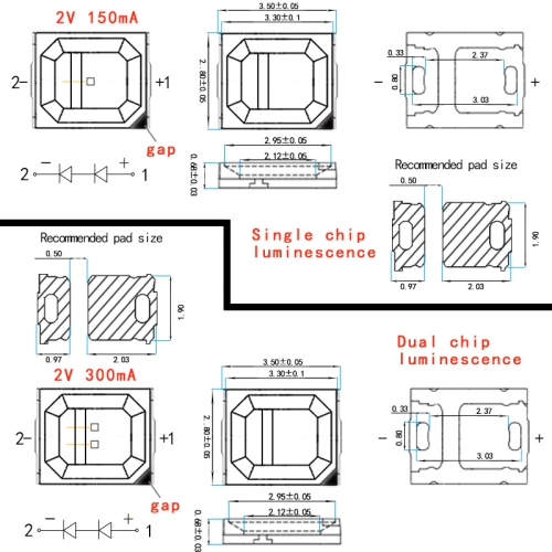 Package  | 2835 Plant Red SMD LED  |