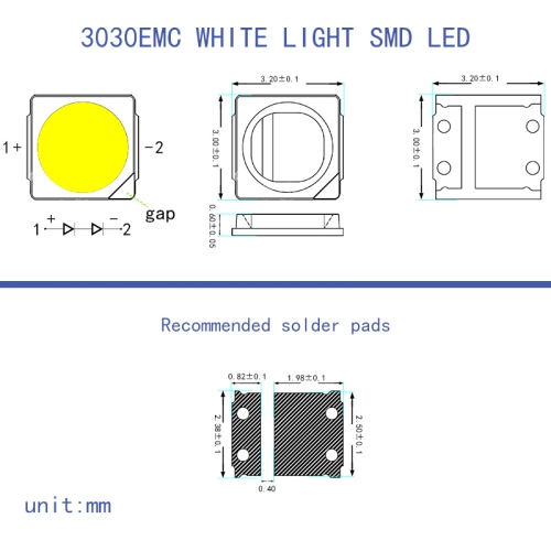 Package | 3030 white light EMC SMD LED(Round cup) |